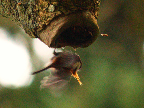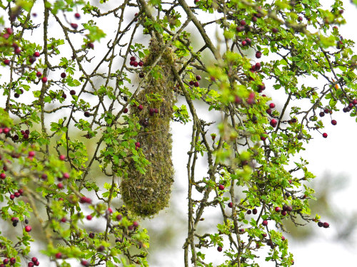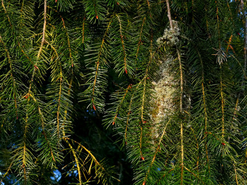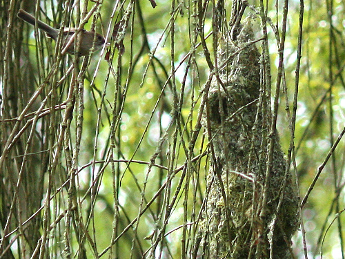 Bushtit building a nest in a cherry behind the park office. Photo by Ollie |