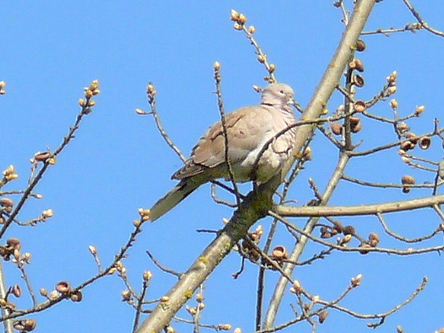 This morning around 10:00 a.m., Kraig Kemper found a EURASIAN COLLARED-DOVE at Marymoor Park. I raced down and saw it, and several other people came down and were able to find the bird. It was last seen in the early afternoon near the velodrome (next to the restroom building), but it was originally found in a tree along the road a bit west of there.