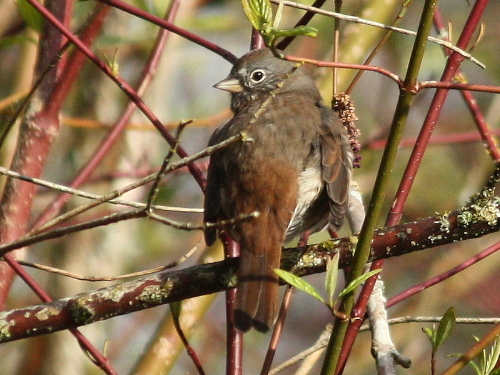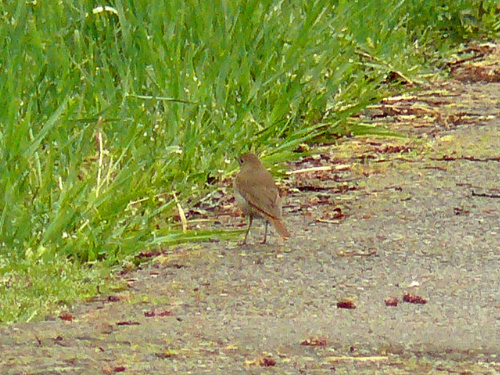 Hermit Thrush, with red tail contrasting with brown back. Photo by Ollie Oliver |