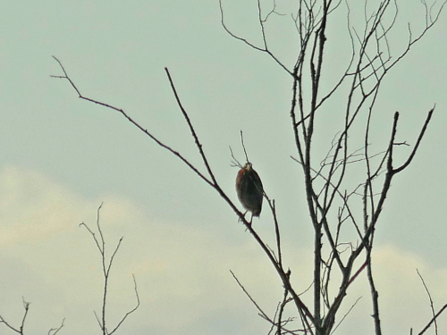 We had dark overcast for most of the morning today. There was lots of singing, but bird sightings were in short supply. About 8 species were heard-only, with another two seen pre-dawn only, and two more seen only on a late scan of the lake.