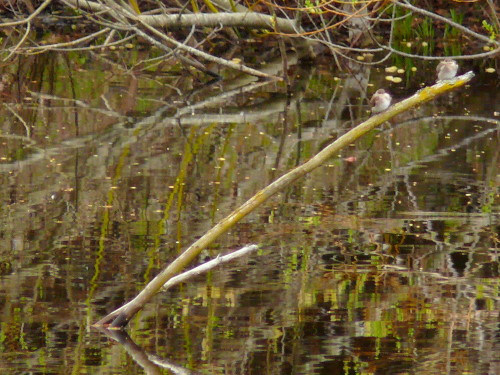 Northern Rough-winged Swallows on a branch sticking out of the pond at the RC.