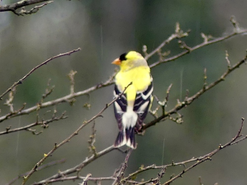 Our bad luck with the weather continues, as does Mayvember. Not quite as cold nor as rainy as last Thursday, but not the nice sunny weather of yesterday. Why can’t we get a break??? It was dark for a long time after sunrise today, with mizzle and drizzle (but some breaks); the rain didn’t set in until mostly after the walk. Since last week, many winter birds have disappeared. A few summer birds filled in for them, but as usual the species total today was lower than the totals at the beginning of May.