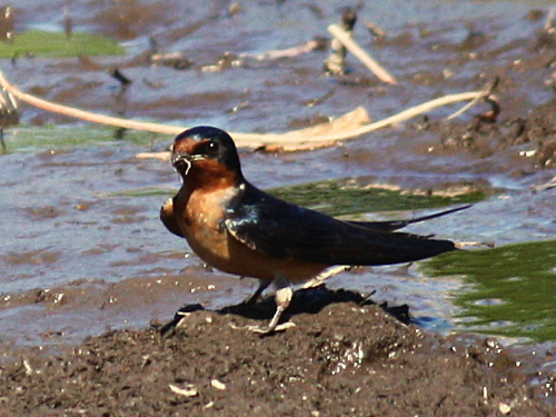 Barn Swallow gathering mud for its nest. Photo by Lillian Reis |
