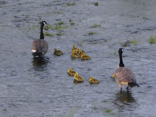 Canada Geese and goslings, below the weir. Photo by Michael Hobbs
