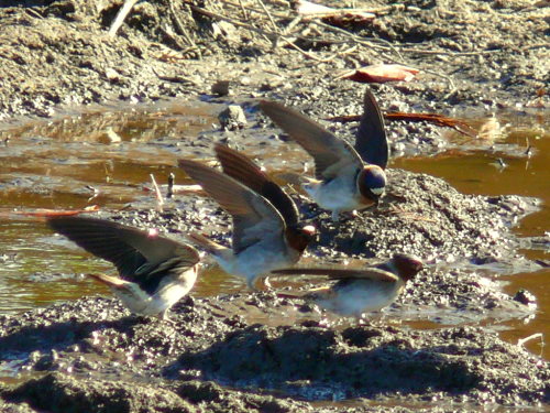 Cliff Swallows gathering mud for their nests at the Compost Piles |