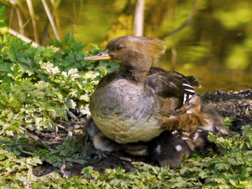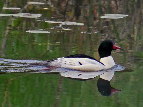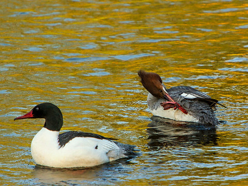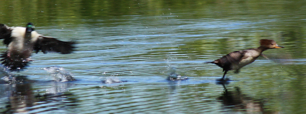 Fleeing female Hooded Merganser. Photo by Lillian Reis |