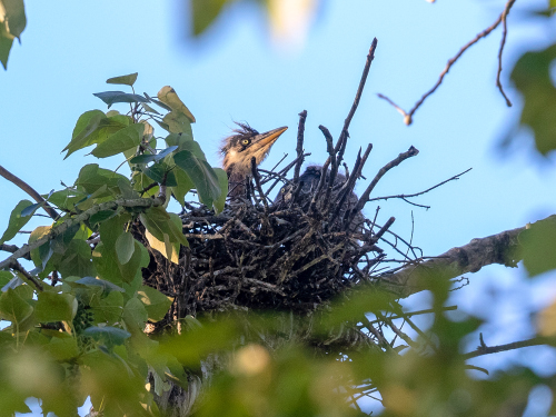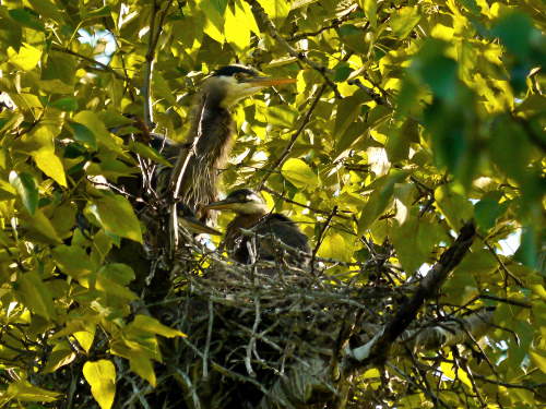 Baby Great Blue Herons on one of the 70+ nests. Photo by Tony Ernst.