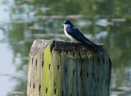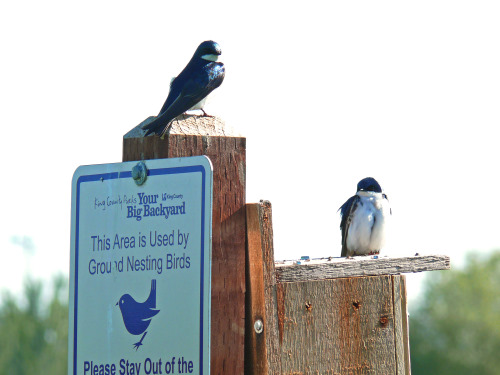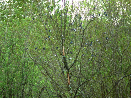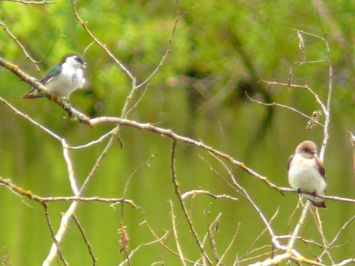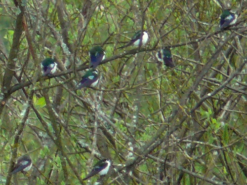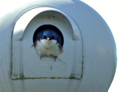 - Purple Martins have taken over the gourds at the lake viewing platform, but for the 2nd week a Tree Swallow pair continues to perch nearby w/ nesting material, trying in vain to enter one of the gourds where they presumably had tried to set up shop before the martins returned.