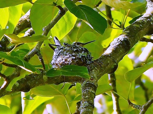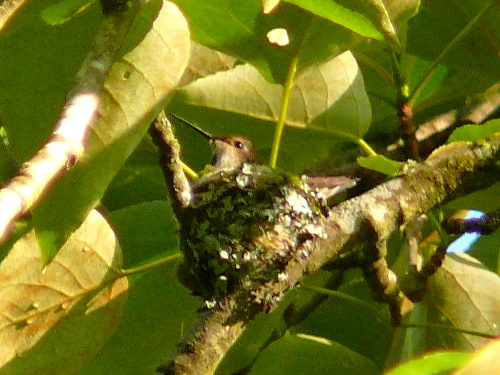 Female Rufous Hummingbird on her nest near Dog Central |