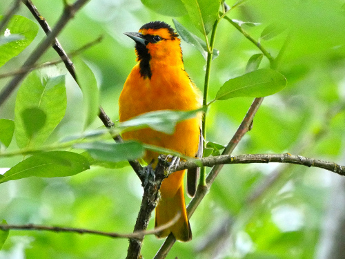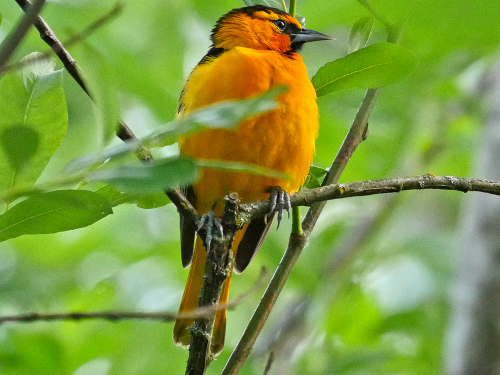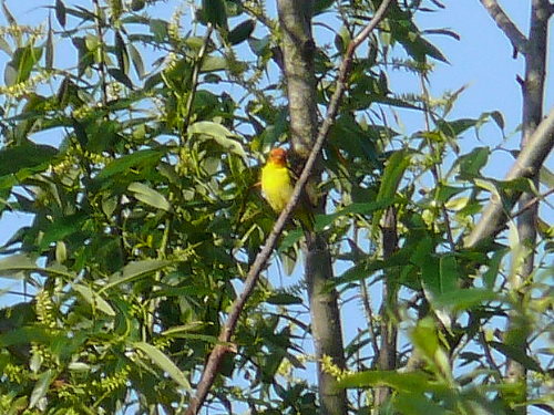 - Bullock's Oriole - Female possibly building a nest in the heronry. Later we saw our first full-adult male of the year