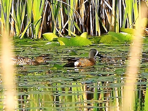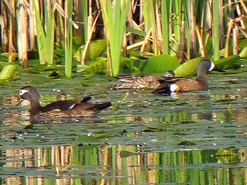 - Blue-winged Teal - 2 males - first-of-year [FOY] flew past us, then circled around and landed for great views just below the weir