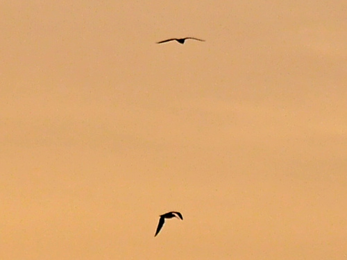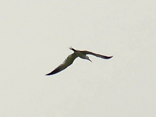 - Gull sp. - A flock of about a dozen gulls with black wingtips flew north in a perfect vee. Really unsure what they might have been