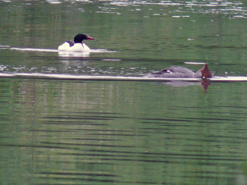 Common Merganser pair at the weir. Photo by Ollie Oliver.
