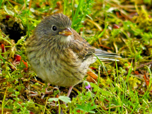 Twice we saw two SONG SPARROWS strutting around together, all puffed up. There was wing fluttering, suggesting copulation solicitation, but no copulation was observed. They looked like tiny red-brown grouse. It was very funny. Lesser Song-Grouse on the lek?