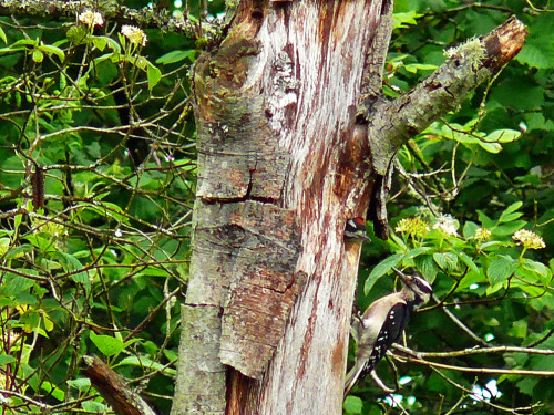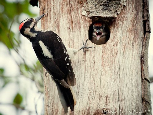Male Hairy Woodpecker bringing food to the young. Photo by Ollie Oliver |