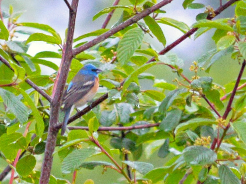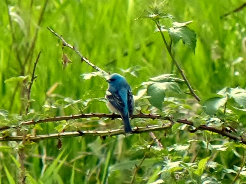Male Lazuli Bunting in the cherries at the Compost Piles |