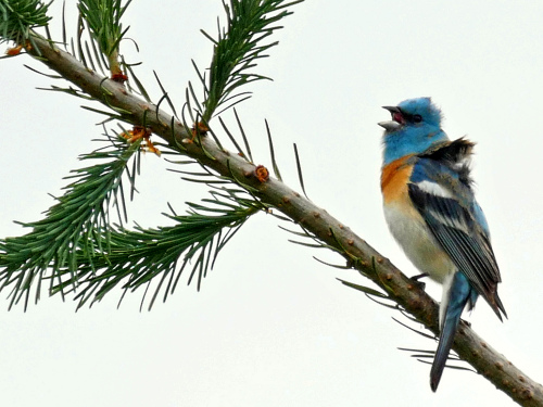 LAZULI BUNTING Male at Compost Piles, singing