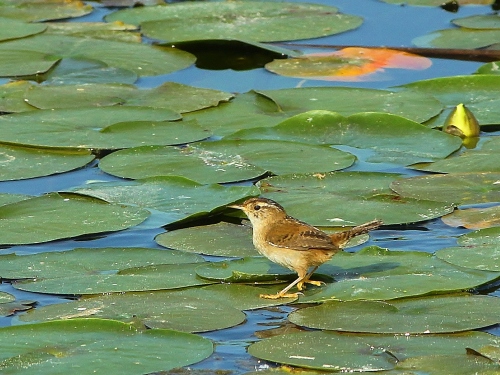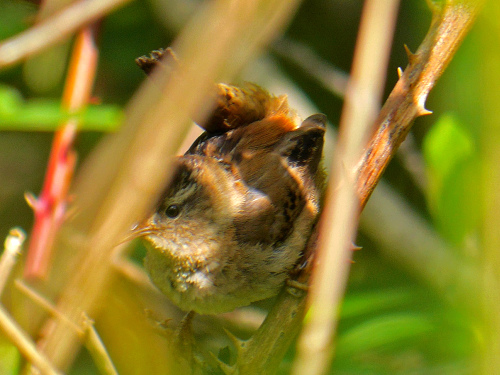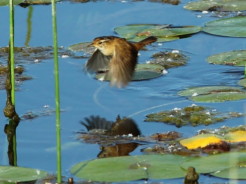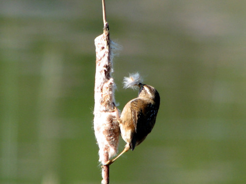 Scott Ramos's photo of a Marsh Wren gathering nest materials |