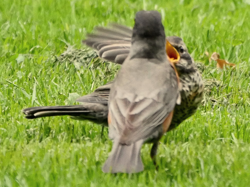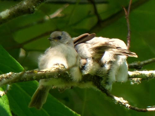 Two of the three Pileated Woodpecker chicks, 2023-06-06. Photo by Kazuto Shibata |