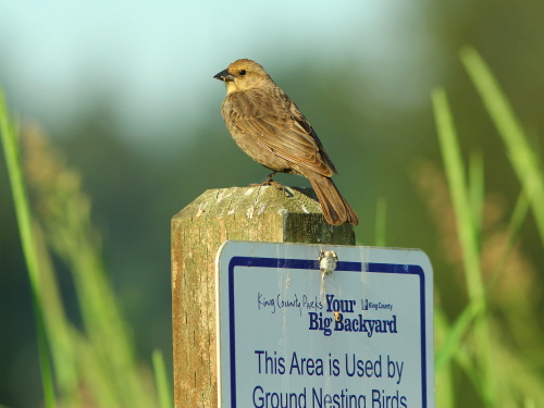 | Marymoor was certainly notable today - chilly (50F), mist, heavy mist, light rain, steady rain. We enjoyed one fifteen minute period when it wasn't precipitating. Slow bird activity, but continuous activity. Willow Flycatchers calling frequently, a couple of Black-headed Grosbeaks singing, Western Wood-Pewees were numerous, but not calling as frequently as recently. We wound up seeing lots of birds, but had to work for some of them. We only heard Swainson's Thrush and Purple Finch.