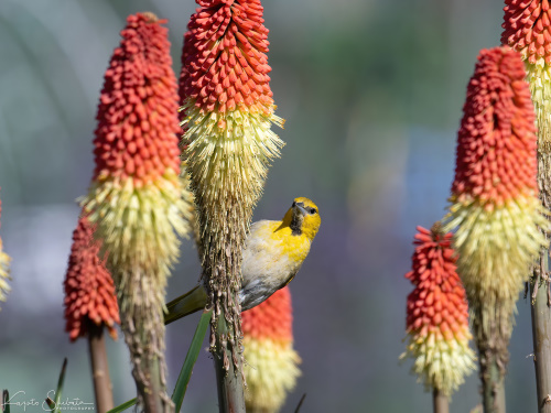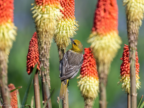 - Bullock's Oriole - Activity at the nest near the heronry. There may be babies in the nest