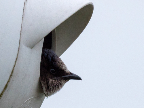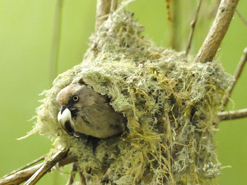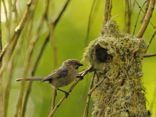Bushtit cleaning the nest, 2011-06-03. Photo by Dave Templeton |