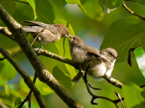 Bushtit with babies to feed, 2011-06-03. Photo by Dave Templeton |