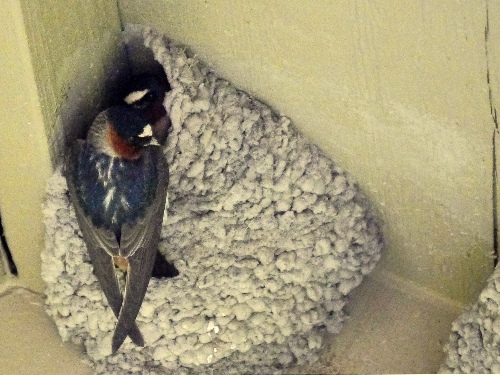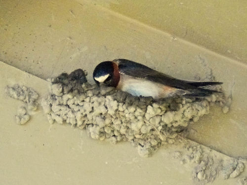 Cliff Swallow building nest, 2011-06-04. Photo by Ollie Oliver |