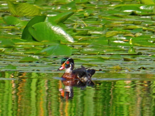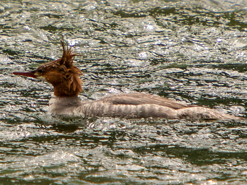 Near the Rowing Club dock, we had a mixed flock of baby WOOD DUCKS (8+) which included 3 baby HOODED MERGANSER. There was no adult of either species around, as far as we could tell. The ducklings all appeared to be same age, and quite young.
