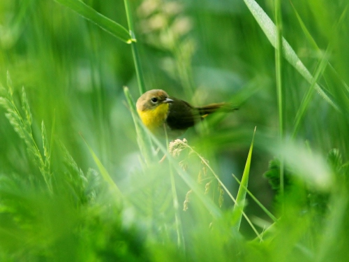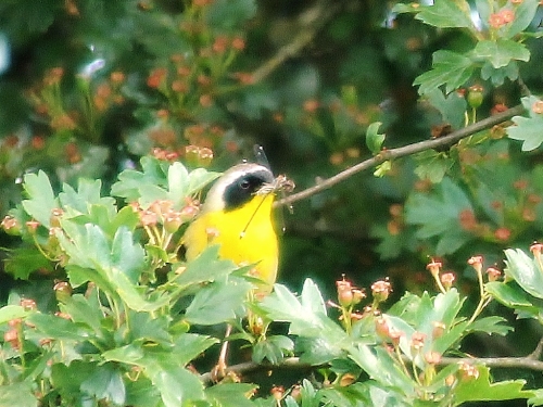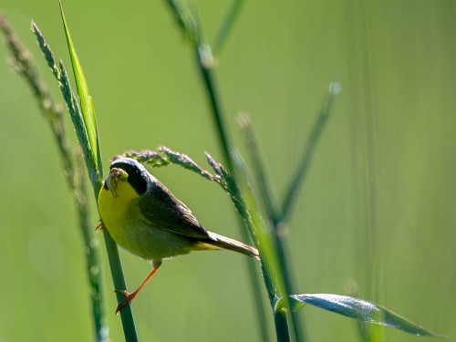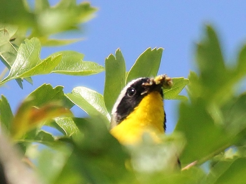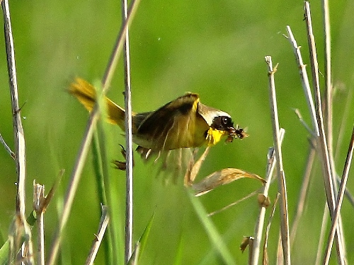 Male Common Yellowthroat bring food to the nest. Photo by Tony Ernst
