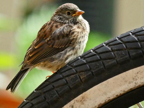 - White-crowned Sparrow - Adult with very young fledgling in the Pea Patch