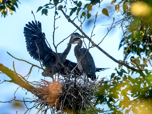 Great Blue Heron babies in the nest. Photo by Tony Ernst