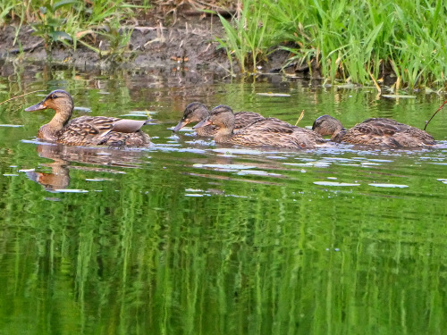 A heavy overcast with mist turning to rain was our fate this morning. By 9:00, it was clearing a bit, but we were almost done by then. Pretty quiet, except for the incessant buzzing on mosquitoes. Repellant can deter them from biting, but it doesn't keep them out of your eyes and ears. Water levels are outrageously high - 4.8 feet at the gauge, which translates into flooding over part of the trail as you approach the boardwalk, water over the east side of the boardwalk, and water over the access to the Rowing Club dock! This is approaching the high water levels of winter!