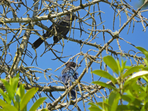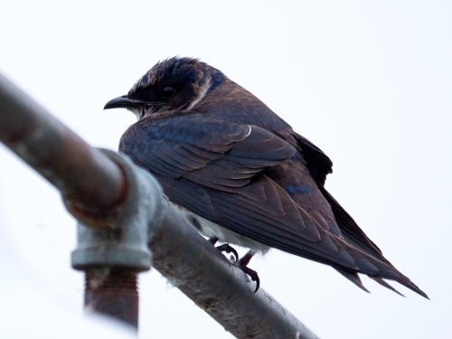 The confusing situation continues at the Purple Martin gourds at the Lake Platform. Pre-dawn, Tree Swallows seemed to be owning them. Later, both species were at both gourds, going in and out, but Purple Martins dominating. Not sure which species has/have eggs in there... We're hoping to see juvenile heads sticking out soon. I also saw some indication that Purple Martins may again be nesting in the snags south of the Rowing Club. Martins in natural cavities is a treat.