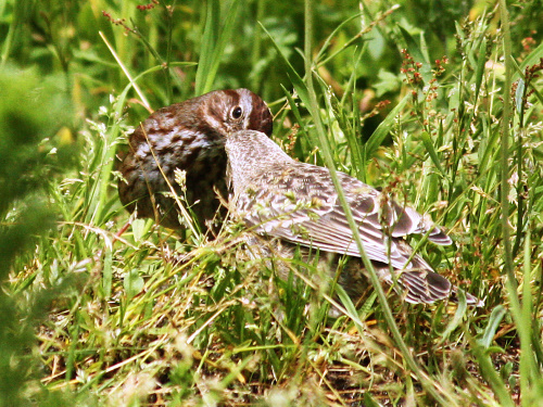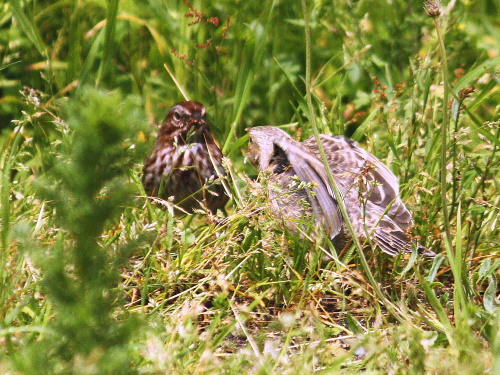 - Song Sparrow - Feeding a Brown-headed Cowbird chick