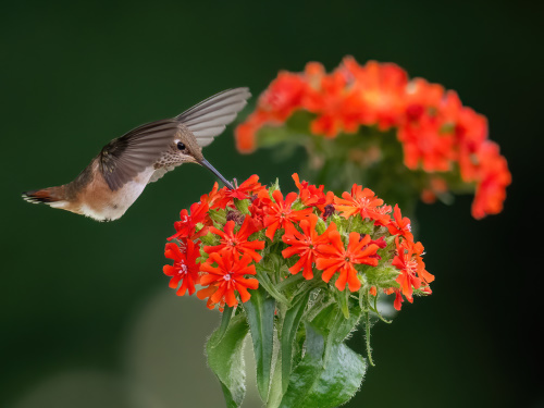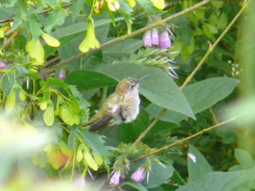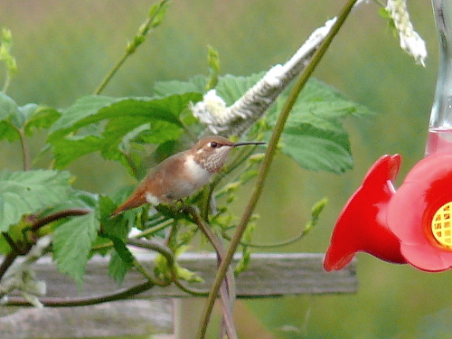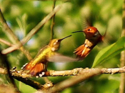 Rufous Hummingbird Major hummingbird battles in the Pea Patch, with the larger