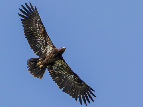 Bald Eagle 13 birds; perhaps 5 adults among them, over/near the lake