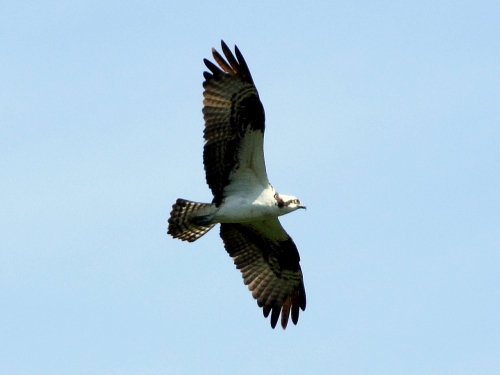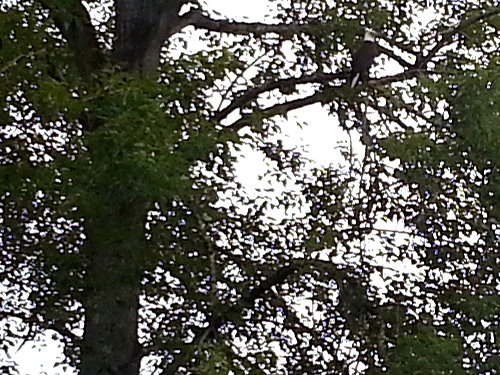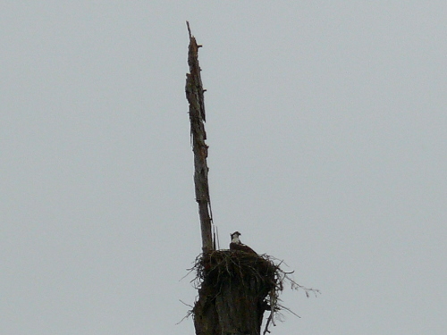 An OSPREY was seen atop the Odd Snag which has hosted nesting RED-AILED HAWKS for years. The hawk nest failed this year (report of a Bald Eagle raid). Sharon saw a Red-tail atop the snag moments after the Osprey had been seen, so the hawks may be maintaining ownership of the nest.