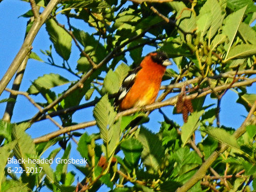 The EVENING GROSBEAK is our first sighting of that species in "summer" (June/July).