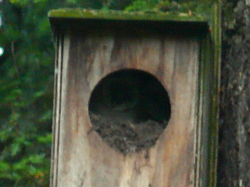 The BARN OWL nestbox had an adult visible, but in the morning, a white-fluffed baby, looking like a demented sock puppet, was also seen in the box. It's still unknown how many babies there are this year, but the box looks crowded