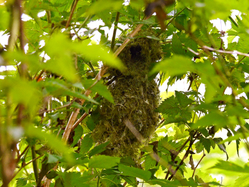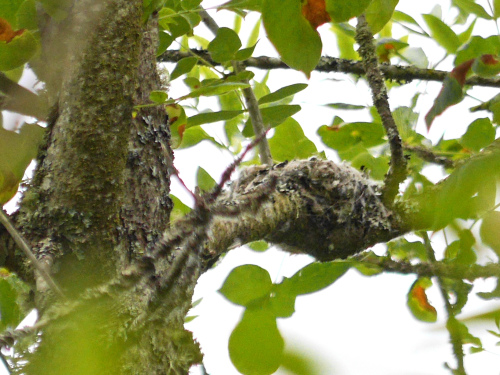 Speaking of baby birds, juveniles were noted for at least these species: Canada Goose, Wood Duck, Mallard, Anna's Hummingbird, Rufous Hummingbird, Great Blue Heron, Northern Flicker, American Crow,Chestnut-backed Chickadee, Bushtit, European Starling, American Robin, Dark-eyed Junco, White-crowned Sparrow, Song Sparrow, Common Yellowthroat, and Black-headed Grosbeak. There may well have been juveniles of other species that I didn't notice as such. But we also had many occupied nests, plus signs of on-going nest building by several species, so breeding is very much in-progress and not wrapping up.