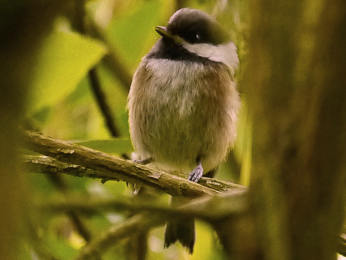 Anna’s on nest, Warbling Vireo singing from same area as last week at Rowing Club, presumably on same nest, Black-capped Chickadee entering nest hole