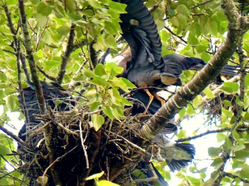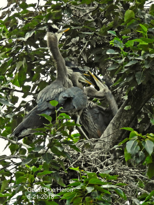 - Great Blue Heron - Maybe half of the chicks have fledged. Awkward fishing techniques on display