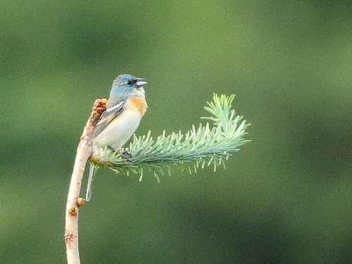 Lazuli Bunting Male singing in Snag Row near the Compost Piles