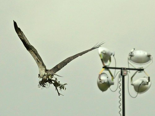 Osprey atop Red-tailed Hawk nest on odd-snag west of the park |