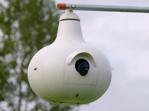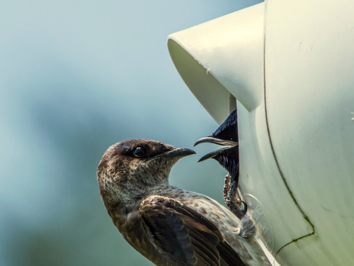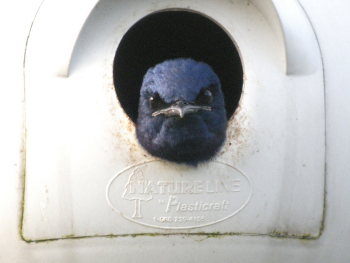 Male Purple Martin in a nest gourd, 2010-06-18. Photo by Bill Byers |