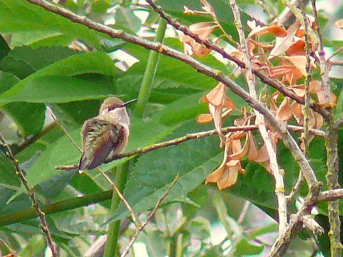 Anna's Hummingbird ANHU being harassed by RUHU. Both immature?