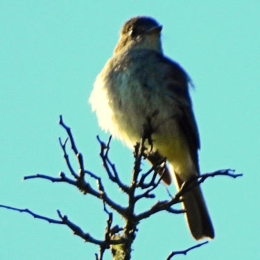 The most notable highlight was the LEAST FLYCATCHER, still singing incessantly from the grove on the north side of Dog Central, the main dog swim beach with the bulletin board and benches. This bird has remained in this tiny grove of willows and cottonwoods for 8 days at least, and he might be settled down for longer.