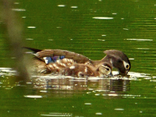 When we were at the Lake Platform, three RIVER OTTER appeared on the east shore. About 8 tiny MALLARD ducklings quickly scooted away from shore. No mom in sight for several minutes. I think she chickened out when the otters approached and ditched the kids until it was safe! She did eventually rejoin them and everyone went back to normal.