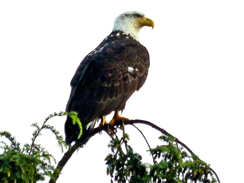 LOT OF BABY BIRDS were about today, including Wood Duck, Hooded Merganser, Osprey (baby(s?) on nest), Bald Eagle, Rufous Hummingbird, Downy Woodpecker, American Crow, Tree Swallow, Black-capped Chickadee, Bushtit, Golden-crowned Kinglet, American Robin, Dark-eyed Junco, and Brown-headed Cowbird. (Maybe some of the House Finch too?)